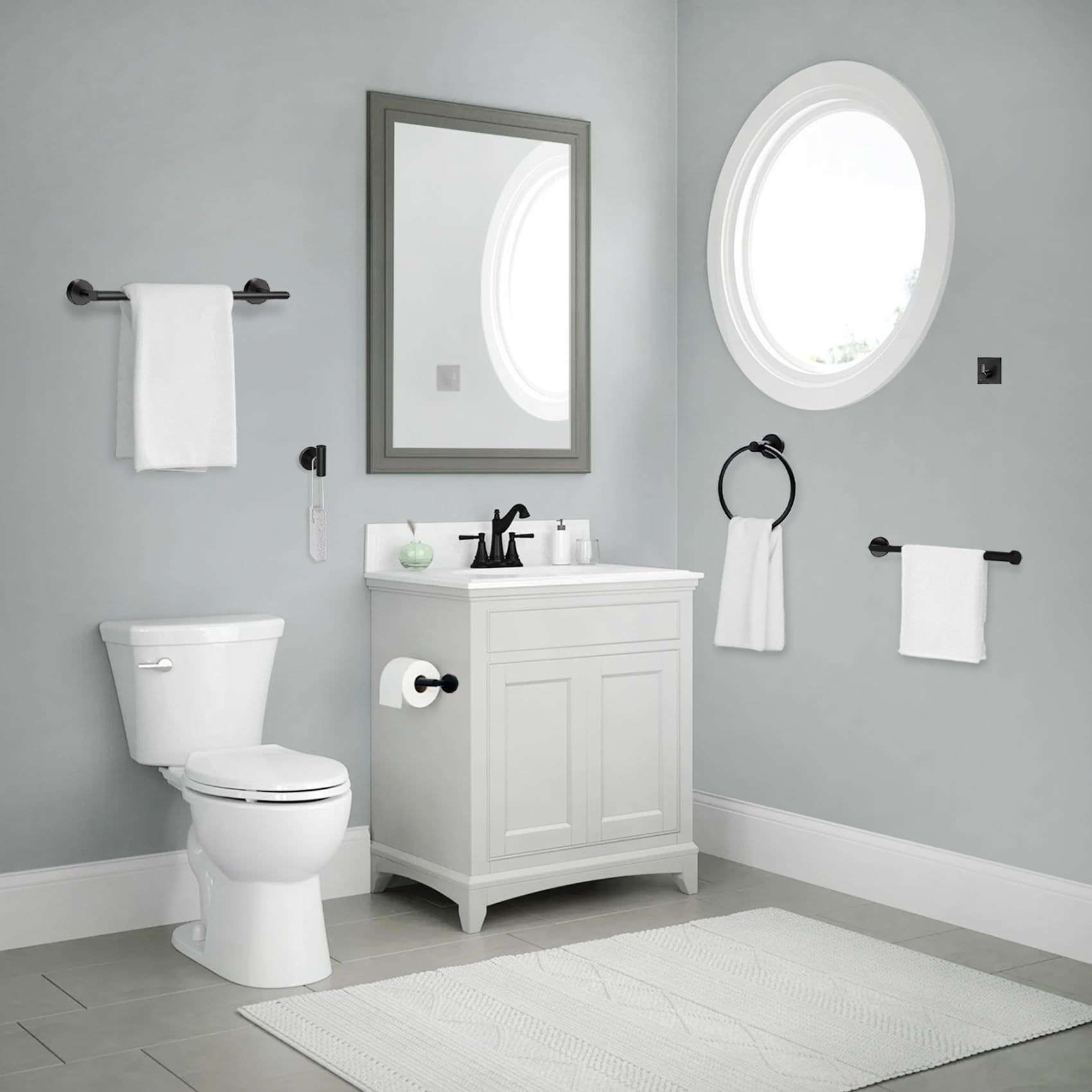 - Premium Material – black bathroom hardware set are constructed from stainless steel which prevents rust and corrosion in your bathroom for long lasting durability.