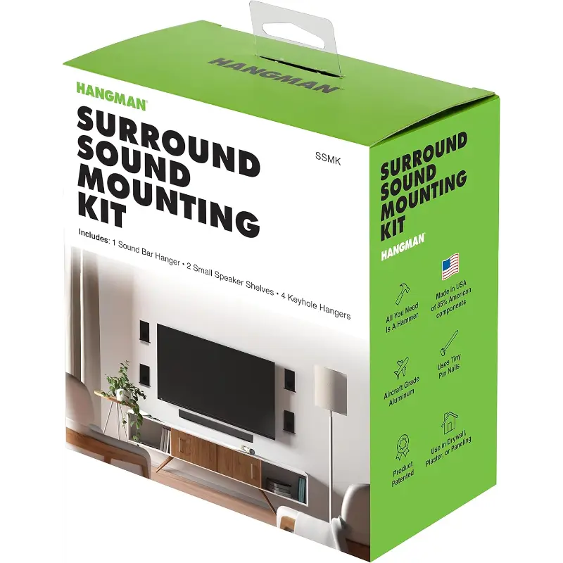 Hangman No Stud Surround Sound Mounting Kit No Drill Sound Bar Hanger Drywall Speaker Shelf SSMK