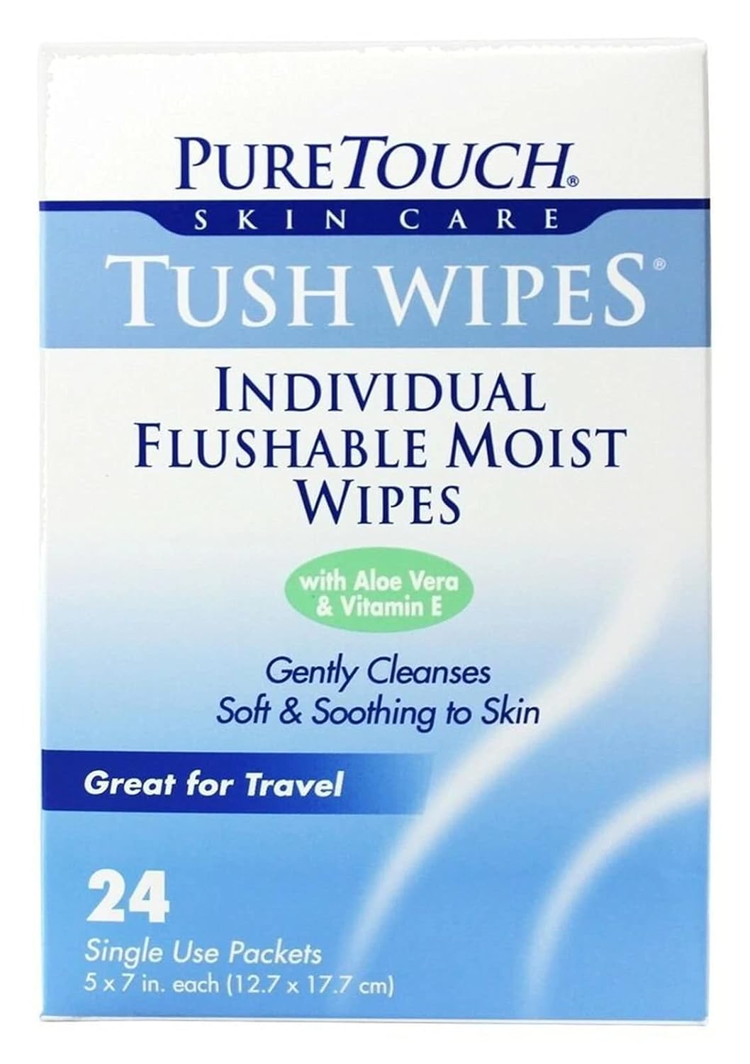 Pure Touch Skin Care Individual Flushable Moist Biodegradable Tush Wipes PureTouch Skin Care Individual Flushable Moist Biodegradable Tush Wipes offer gentle and thorough cleaning you can’t get from irritating dry bathroom tissue. Pure Touch Skin Care Individual Flushable Moist Biodegradable Tush Wipes are soft and soothing to skin, leaving you with that fresh, ultra clean feeling. Each Pure Touch