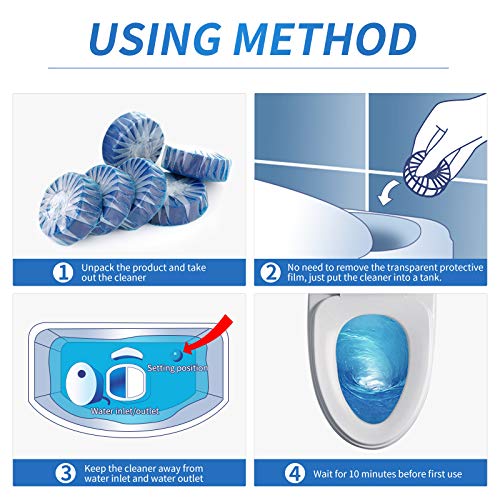 • EASY OPERATION: Vacplus toilet tank cleaner tablets are super easy to use. Simply take out one tablet from the box and drop it into the toilet tank. Then, leave it to dissolve sufficiently for at least 30 minutes until the water turns blue before flushing.